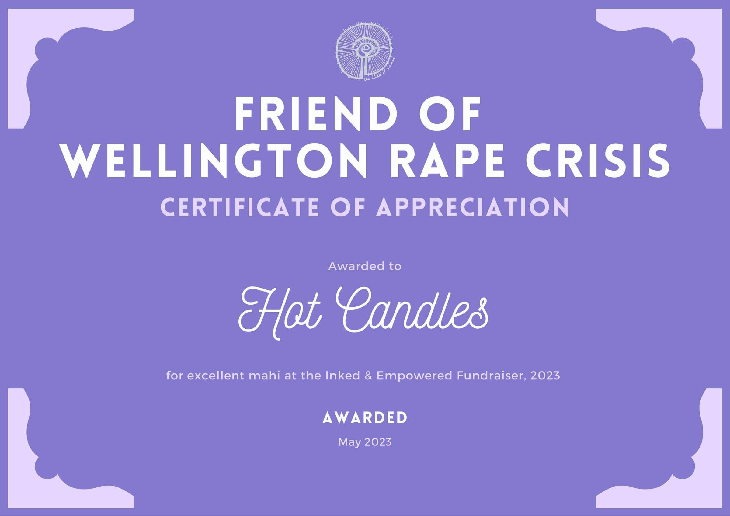 In May 2023, Hot Candles had the amazing opportunity to contribute to the Wellington Rape Crisis by selling candles at a special charity event organised by Inked & Empowered. It was an eventful and joyful day, and I felt privileged to be a part of such a significant cause. Together, we successfully raised over $26k for Wellington Rape Crisis, which is an incredible achievement!